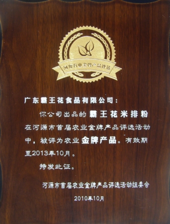 2013年6月15日被河源市旅游局、河源市旅游飯店業(yè)協(xié)會指定為“龍鄉(xiāng)貢”杯首屆客家菜烹飪大賽專用米排粉。