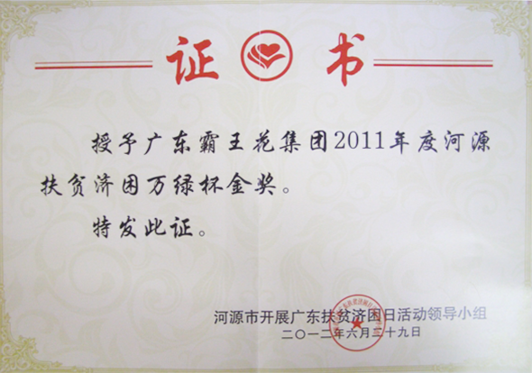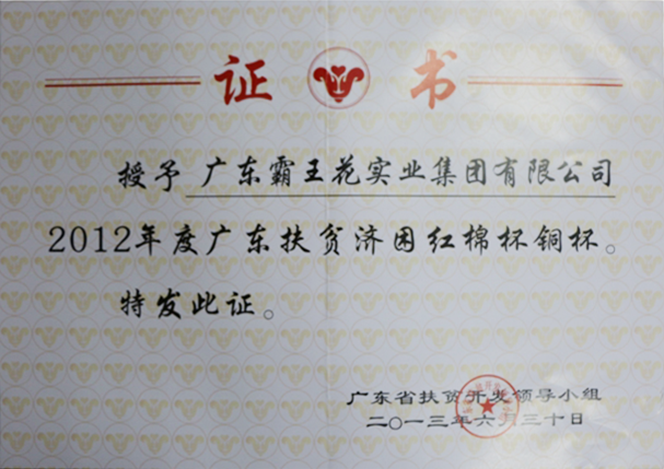 2012年度廣東扶貧濟(jì)困紅棉杯銅杯