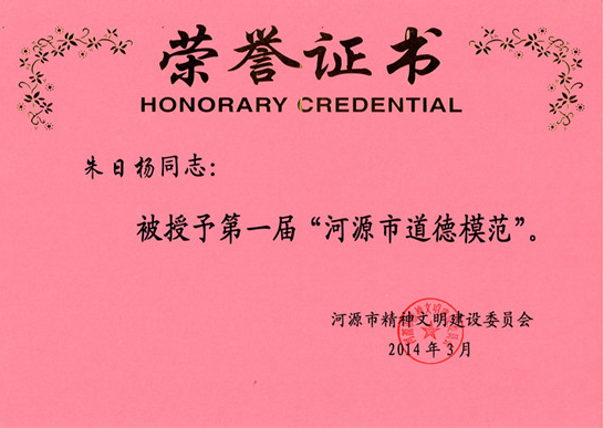 董事長榮獲“第一屆河源市道德模范榮譽(yù)”