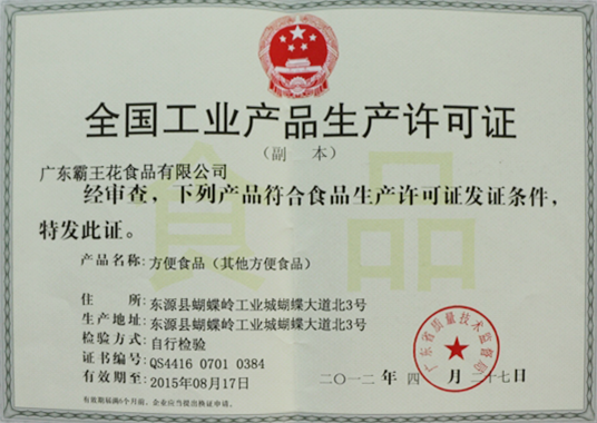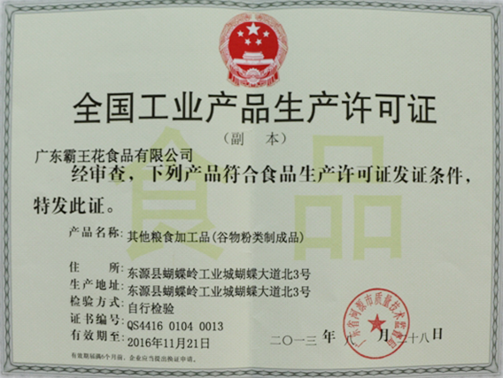 經(jīng)審查,下列產(chǎn)品(谷物粉類制成品)符合食品生產(chǎn)許可證發(fā)證條件,特此發(fā)證。