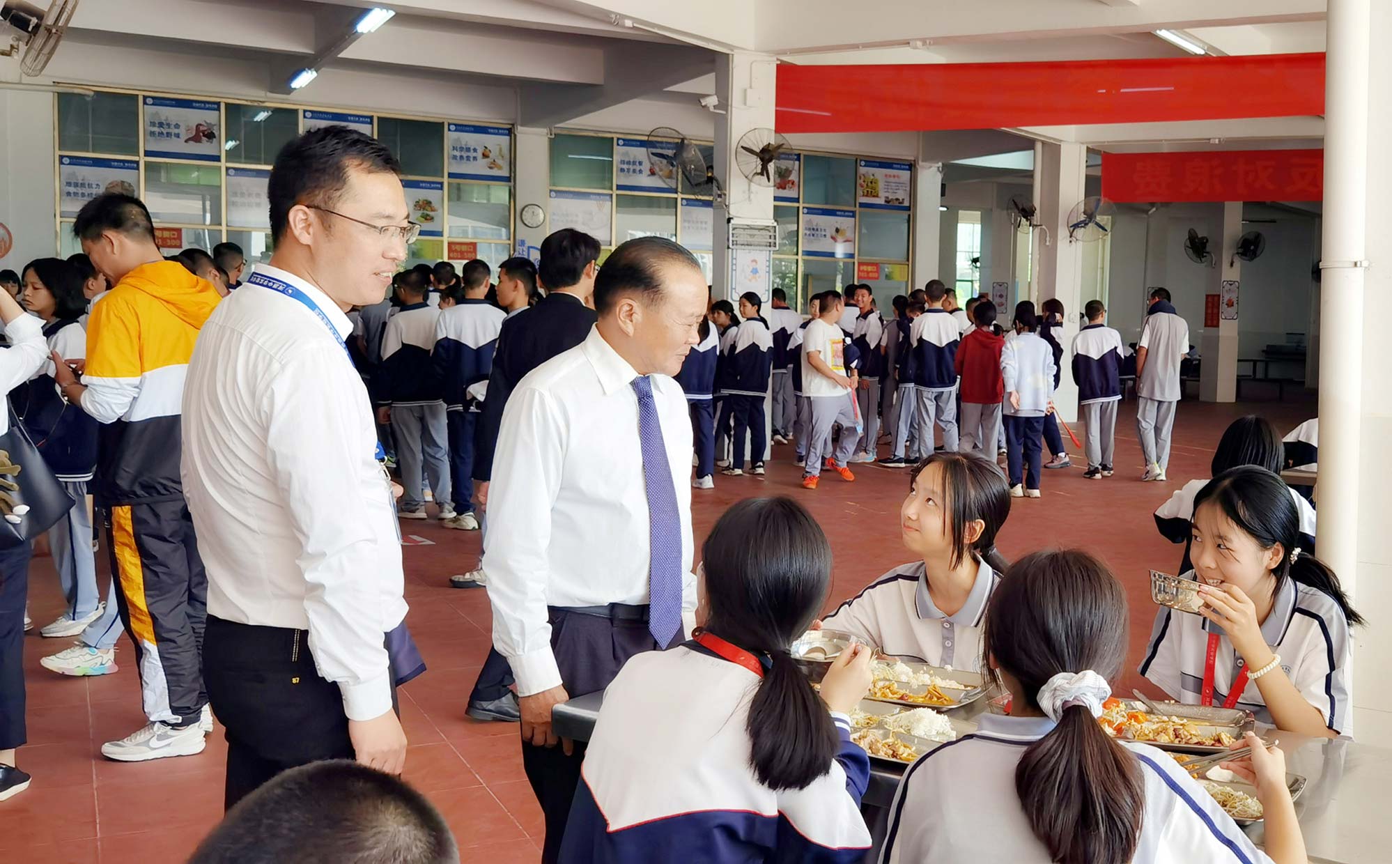集團董事長朱日楊、常務副校長謝輝華了解師生用餐情況