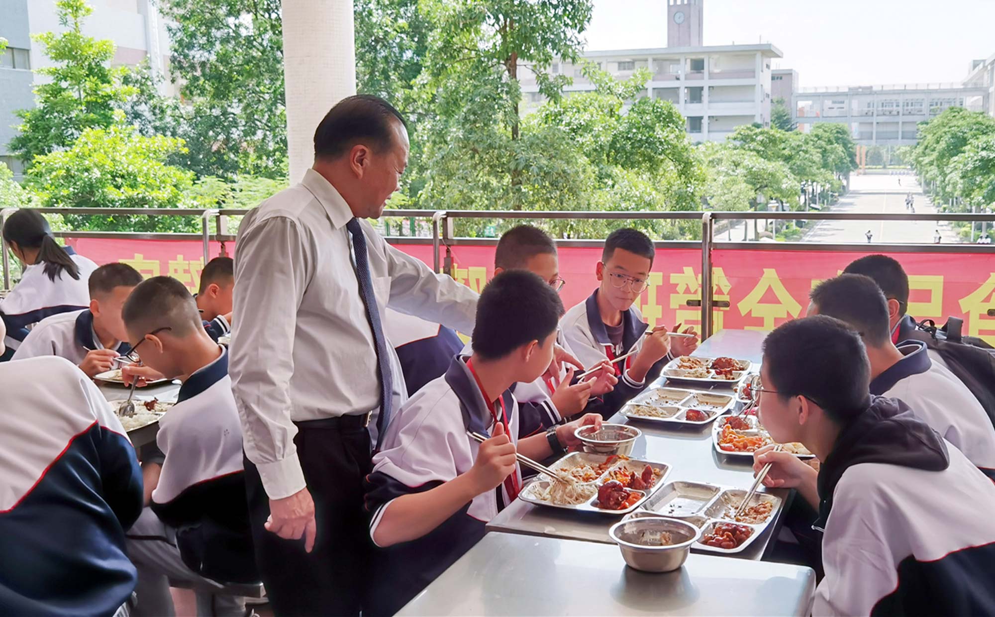 朱日楊董事長檢查了廚房飯菜、衛生及每日留樣、進貨憑證等,親切詢問了正在用餐的學生們對飯菜口感、品類、衛生、分量的評價,并叮囑在場的學生一定要好好吃飯、加強鍛煉、努力學習、健康成長。