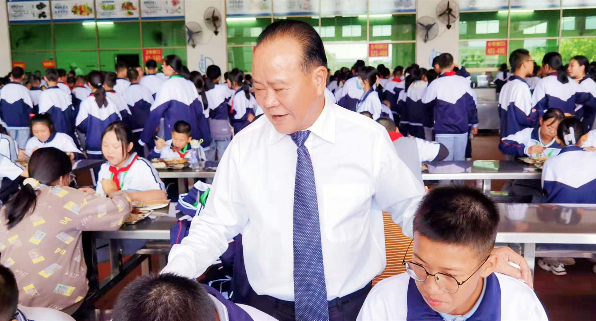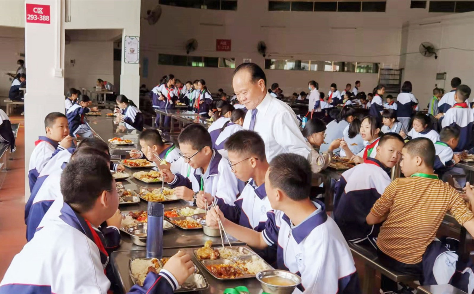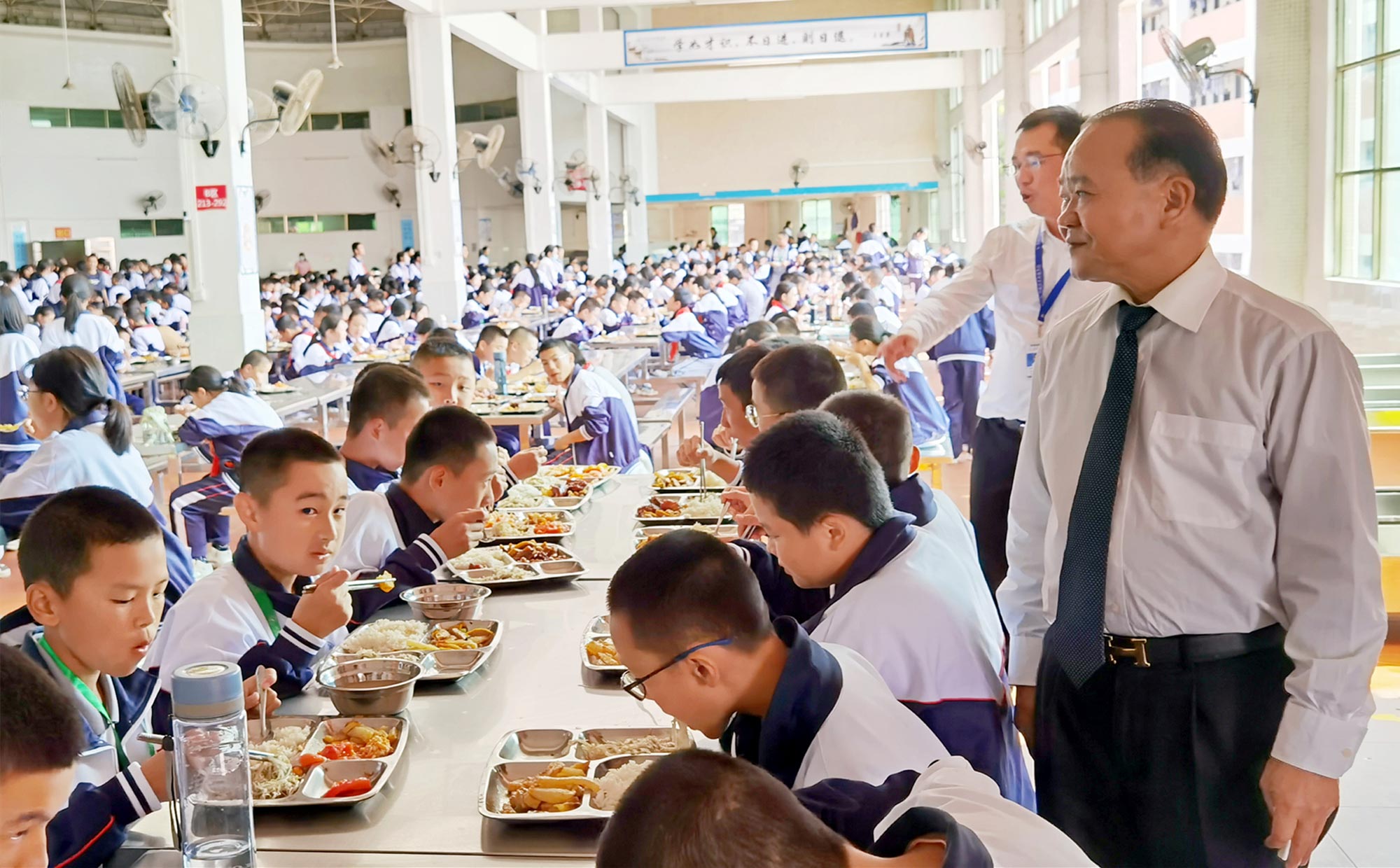 10月18日,廣東霸王花集團董事長朱日楊先生親臨集團旗下河源市新河實驗學校飯堂,在學校常務副校長謝輝華、初中部校長李偉紅等陪同下,深入了解師生用餐情況。